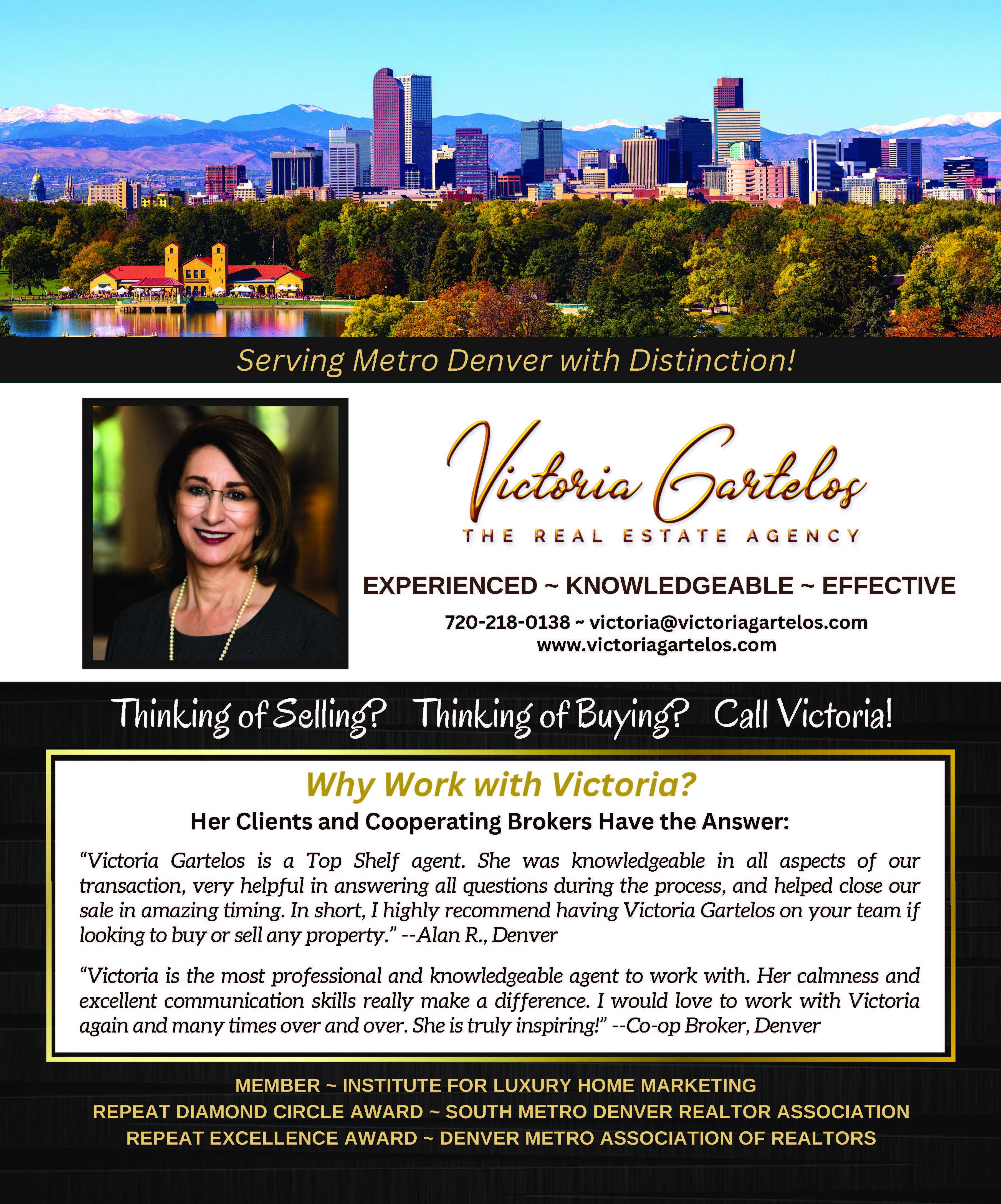 Victoria Gartelos is proud to be the Founder, Broker, Realtor of The Real Estate Agency ~ Denver
